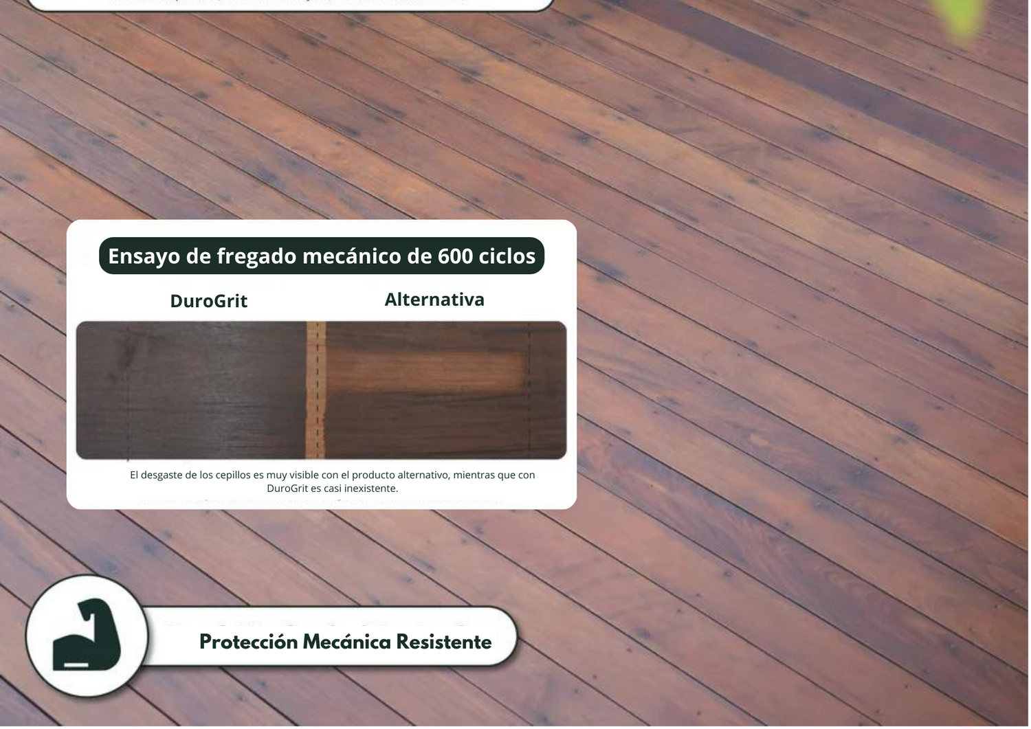 Para asegurarnos de que nuestros productos son resistentes al desgaste, los probamos en nuestro laboratorio. Hicimos algunas pruebas de fregado para DuroGrit y comparamos los resultados con productos alternativos.