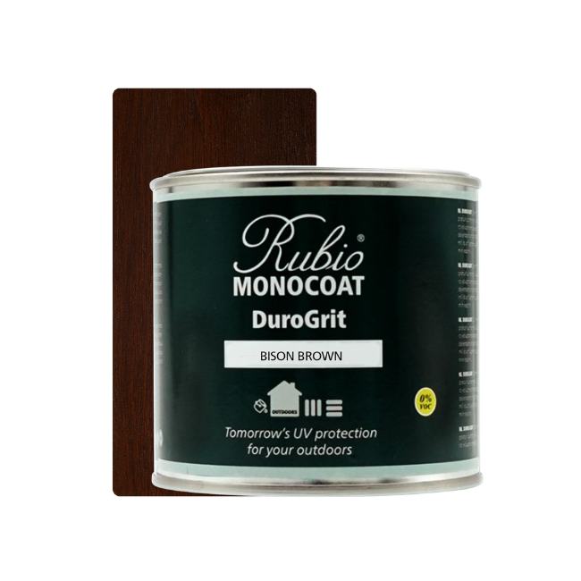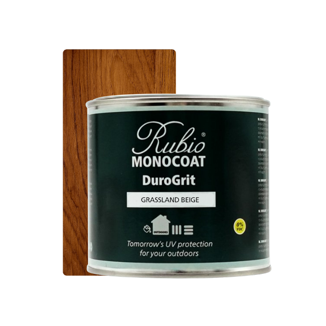 Sobre madera TermoTratada: El proceso de termotratamiento deja en la madera y en su interior restos del proceso de termo. Además de dejar la superficie con un poro muy cerrado cristalizado. Es muy conveniente preparar bien este tipo de superficies para que el DuroGrit pueda penetrar y proteger. Lo más adecuado es lijar las superficies con un grano de lija de 100 ó 120 y después realizar la limpieza con el Wood Cleaner de Exterior.